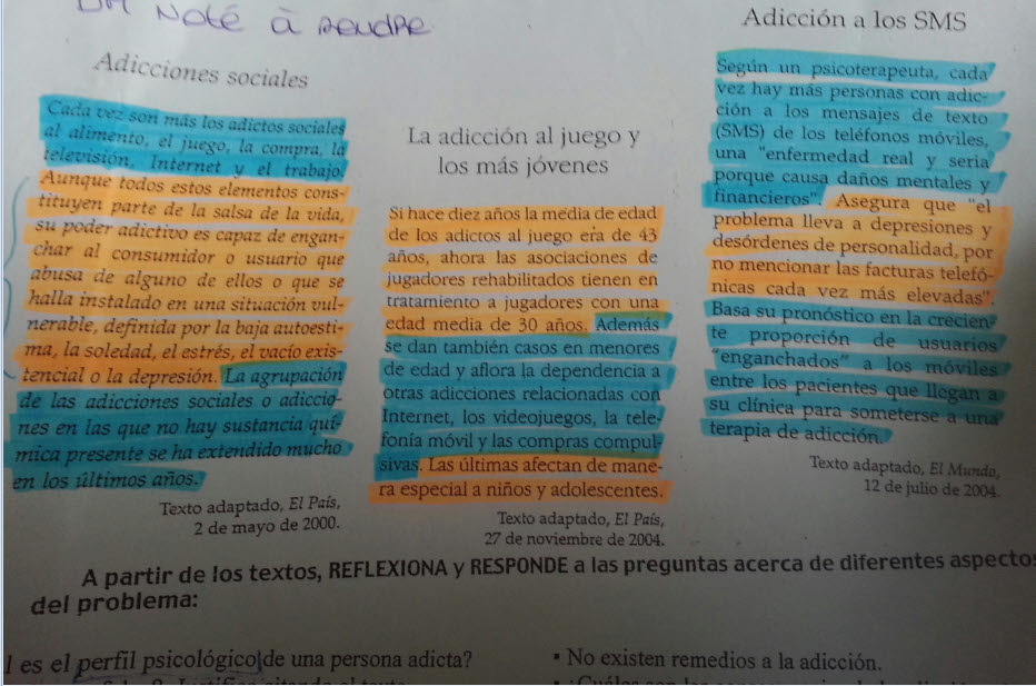 la question est : ? Cuàl es el perfil psicologico de una persona adicta ? il faut trouver la réponse dans le texte mais je n'ai pas trouver... alors j'attend votre aide avec impatience ![]()