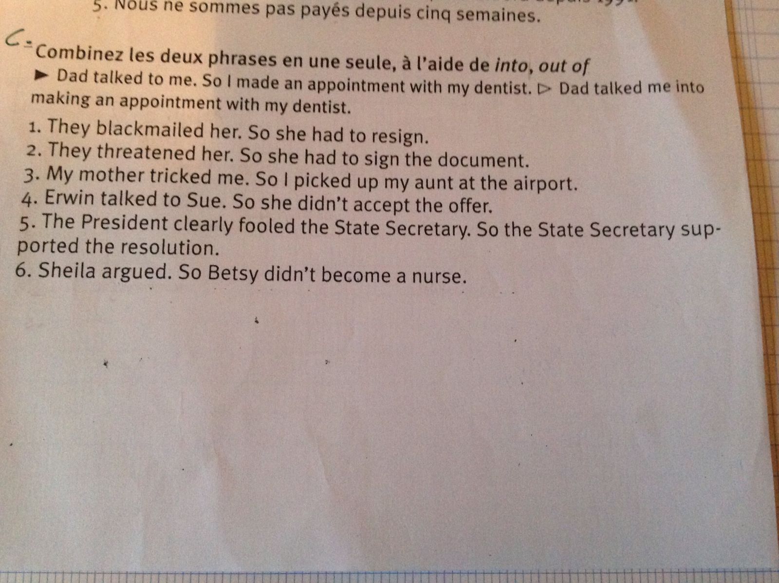 5. The president clearly fooled the state secretary. So the state secretary suported the resolution : the president clearly fooled the state secretary into supported the resoltution
