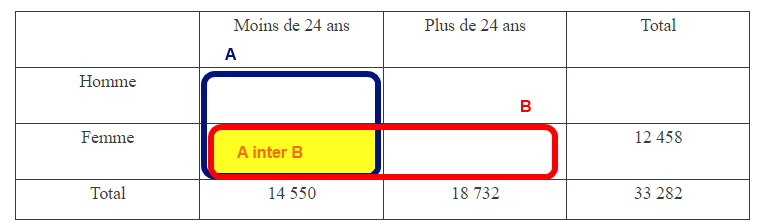 suite \(A \cap B\) est l'intersection des ensembles A et B