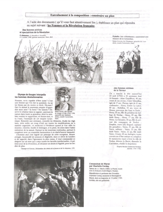 Bonjour pour demain je dois rendre un plan qui répond au sujet << Les Femmes et la révolution >> sauf j'ai déménager et j'ai remarqué que je suis complètement en retard du coup je ne sais pas trop comment il faut faire un plan . ( ce que j'ai compris c'est aussi qu'il faut que je fasse 3 sous-partie dans les 3 ou 2 grandes partie ) Pourriez-vous m'aidez s'il vous plait ?? Cordialement Enzo