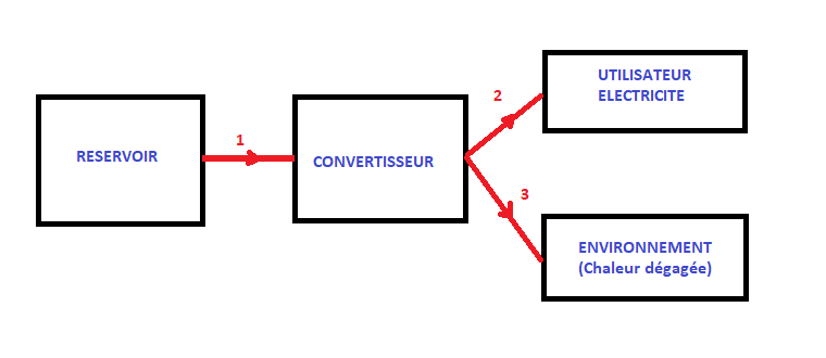 Bonjour, J'aurais répondu ceci : b) c) E1 = 25 * 0,730 * 47,3 = 863 MJ (flèche 1) d) E2 = 5000 * 14 * 3600 = 252.10^6 J (432 MJ) e) rendement = 100 * E2/E1 = 29 % A comprendre, évidemment. 🙂 -