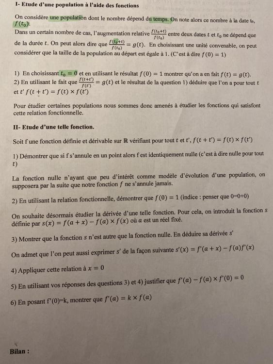 Je vous remercie pour votre réponse, f(to+t)/f(to)=g(t) => f(t)=g(t) je ne comprend pas cette expression . Je vous remercie en avance