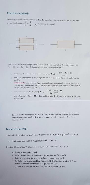 Bonjour je suis élève au CNED et j'ai un devoir à rendre en maths qui porte sur les fonctions dérivées; j'ai réussi les 2 premiers exercices mais je bloque sur ces 2 là.