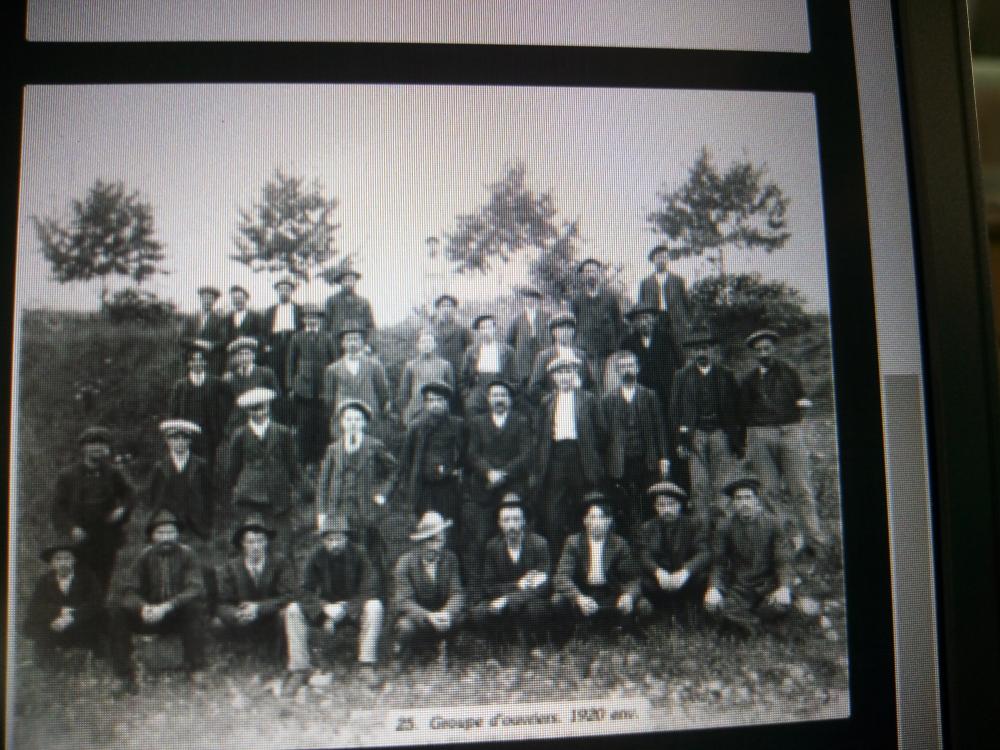 Bonjour pouvez vous m'aider svp merci. D'après ce document, je dois présenter, décrire, expliquer. C'est une image d'un groupe d'ouvrir en 1920. Bonne journée et merci.