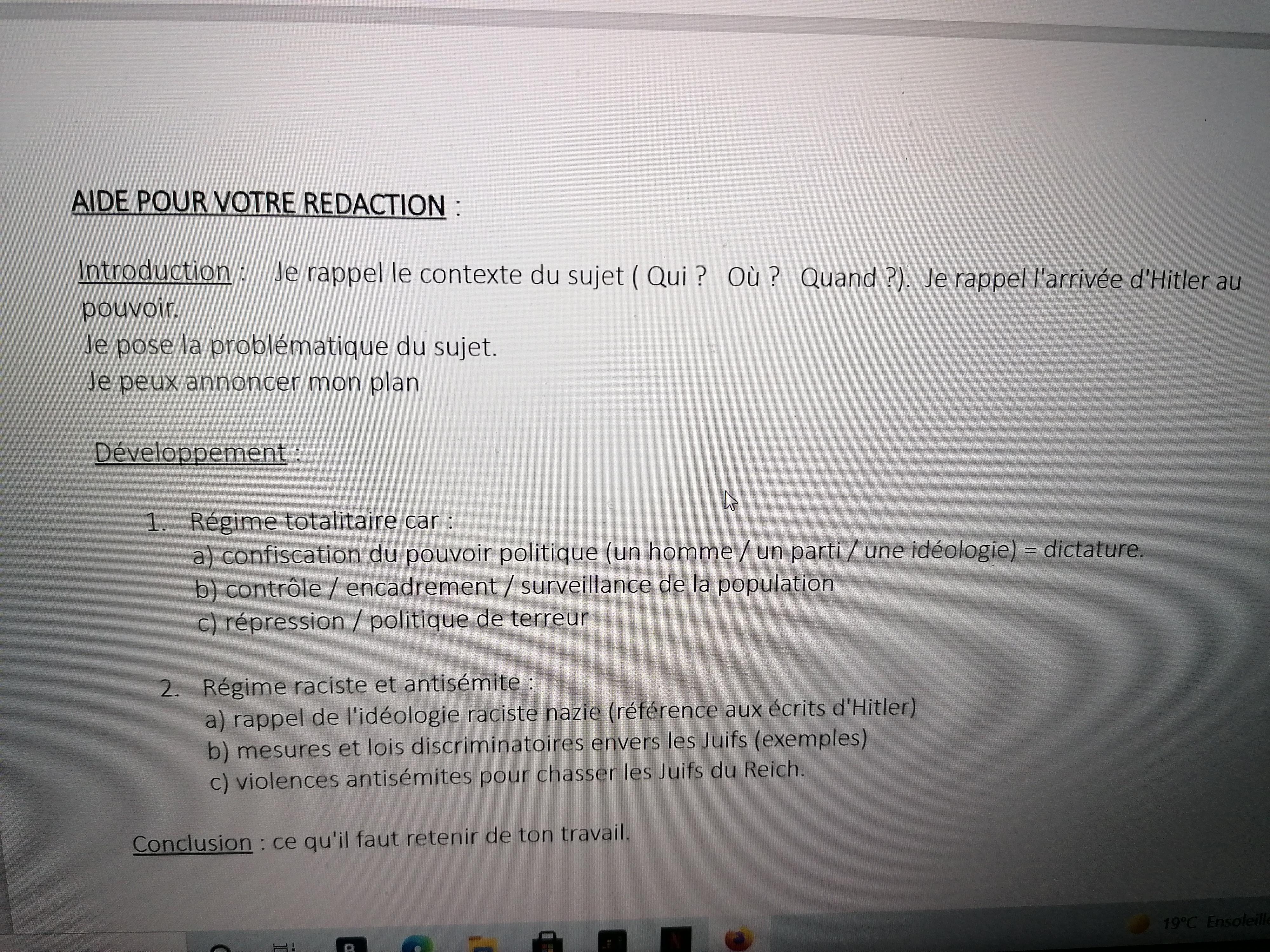 Bonjour j'espère que vous allez bien ? Je suis désolée de vous déranger . J'ai un exercice de français a faire et je n'ai pas compris. Pouvez vous m'aider ou m'expliquer merci beaucoup. Consigne : A l'aide des feuilles faire deux paragraphes pour répondre à la question de réflexion en utilisant le plan + les exemples et les arguments élaboré en classe et utiliser des connecteurs logiques. Voilà . Merci a ceux qui pourront m'aider