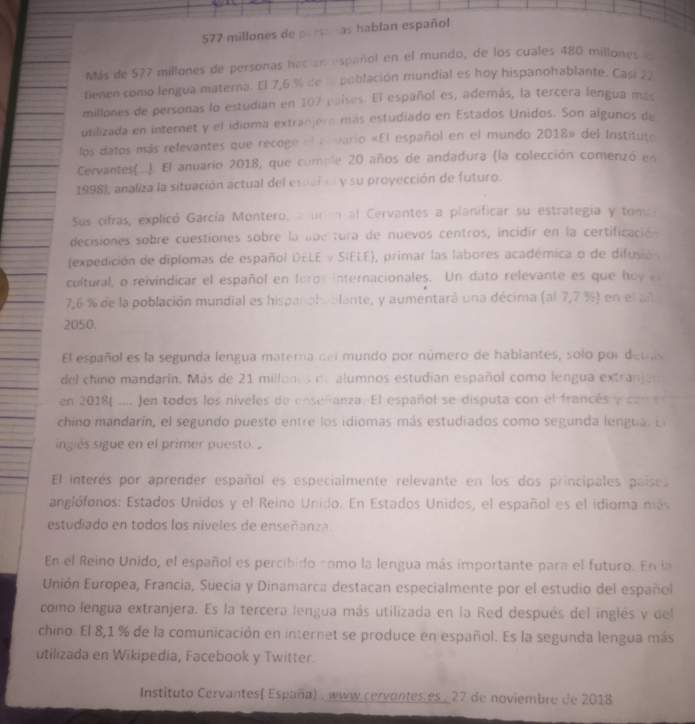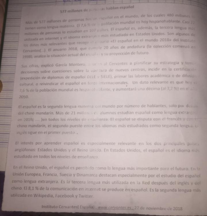 Titulo de la primera parte : situación actual del espagñol en el Mundo y projección de futuro.