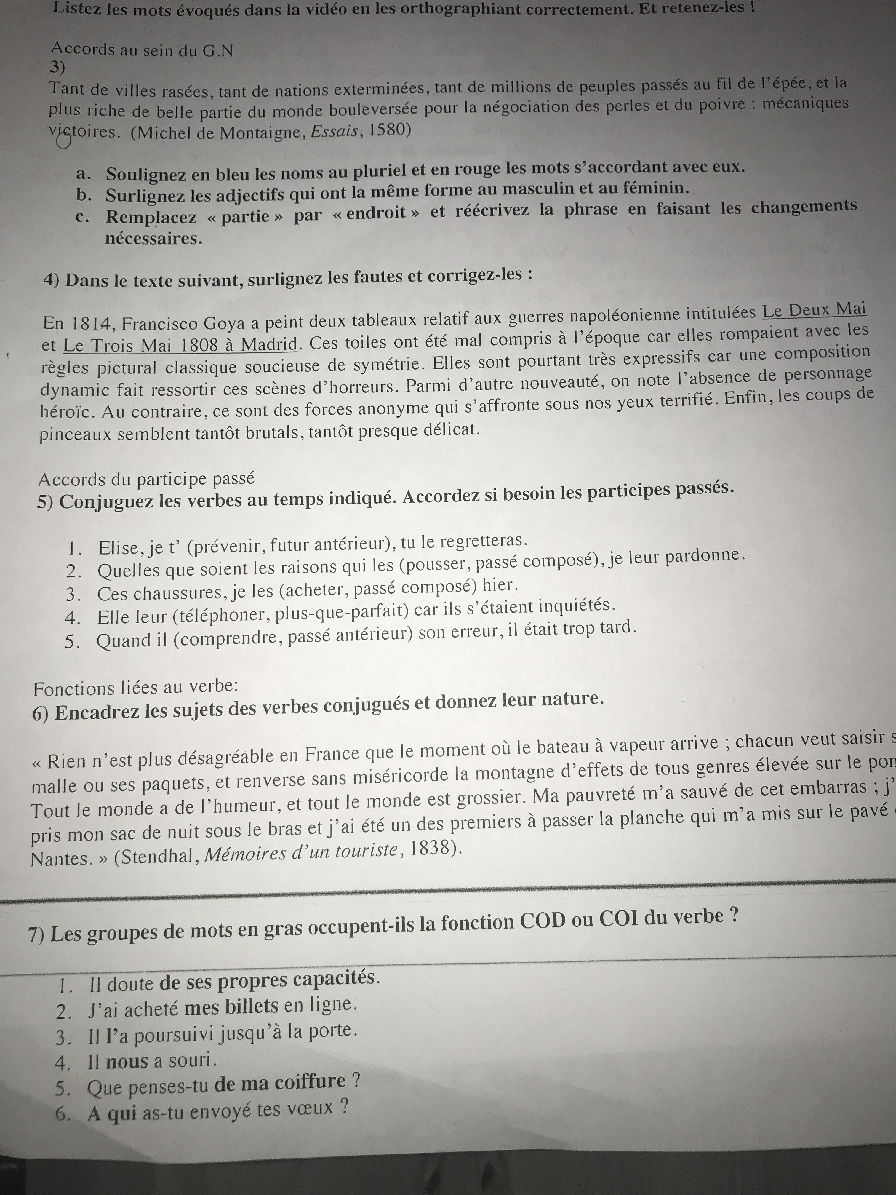 S’il vous plaît aider moi c’est vraiment important je dois mettre les réponses au passé je vous remercie en n’avance