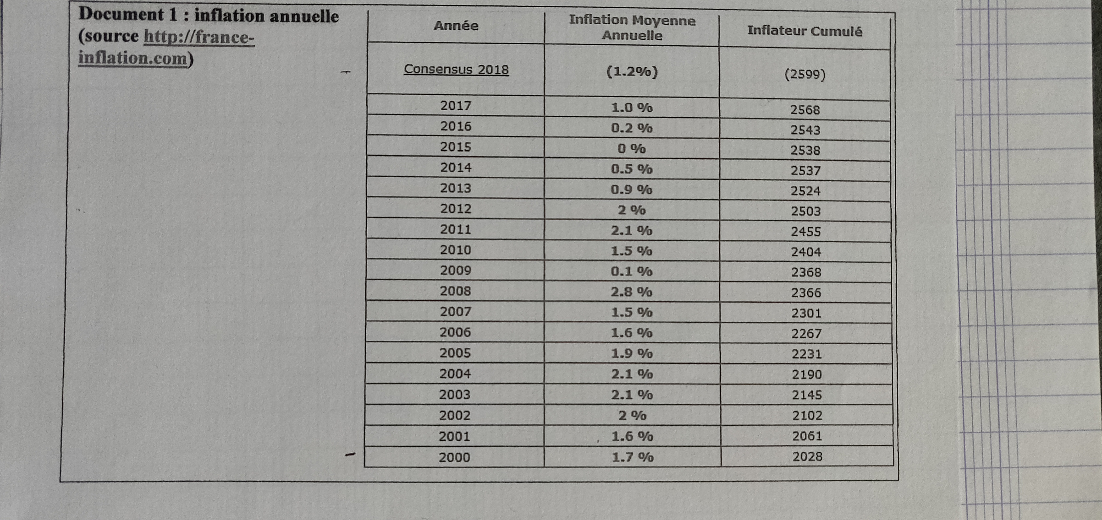 2- Calculer l'inflation annuelle moyenne entre 2000 et 2018, qu'on note Im.
