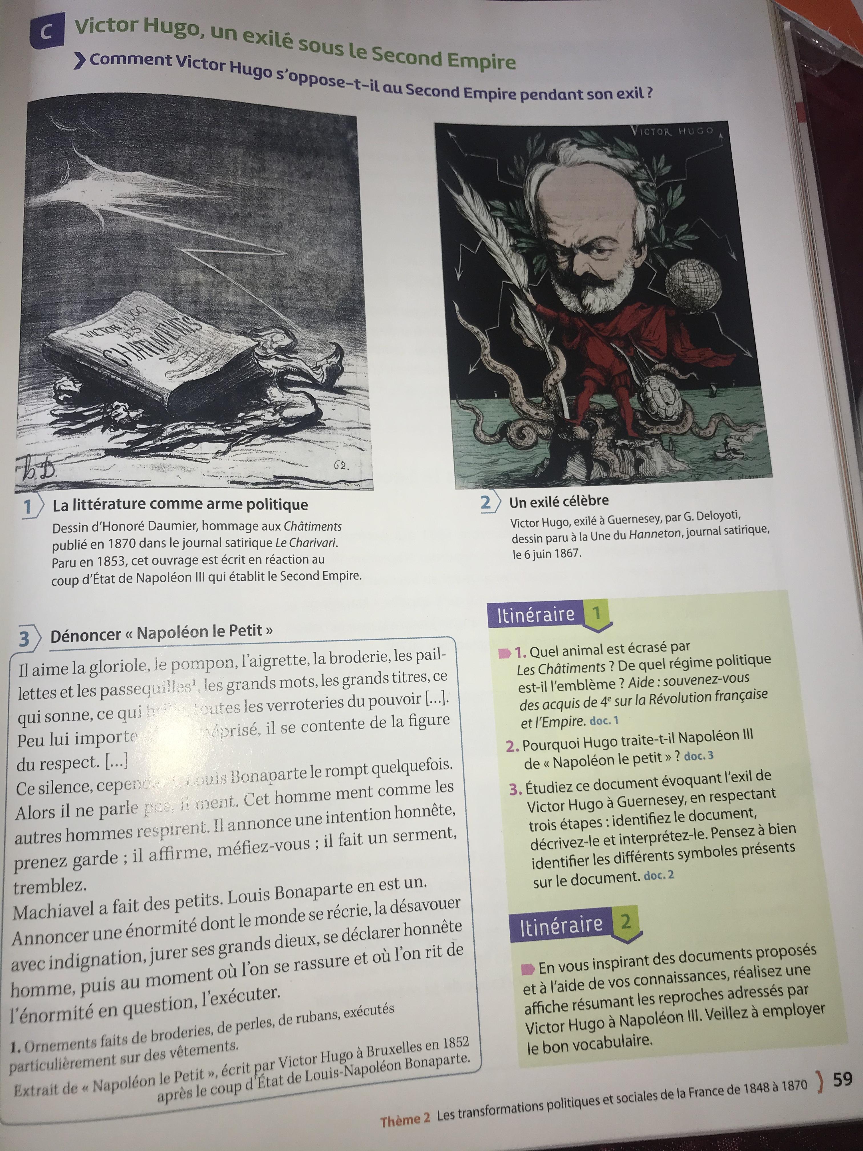 Bonjour, alors j’aurais besoin d’aide pour cette question que dois argumenter en a peu près 1page : Comment Victor Hugo s’oppose t’il au second empire pendant son exil?