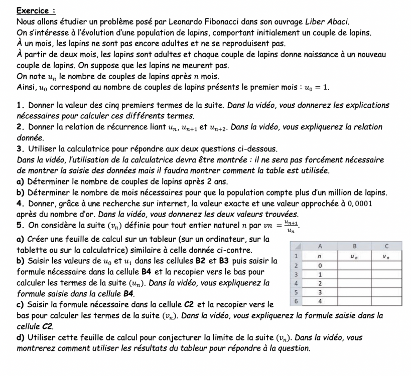 Pour déterminer une valeur approchée de √𝑛, on peut calculer les valeurs successives de 𝑢2,𝑢3,𝑢4,... avec :