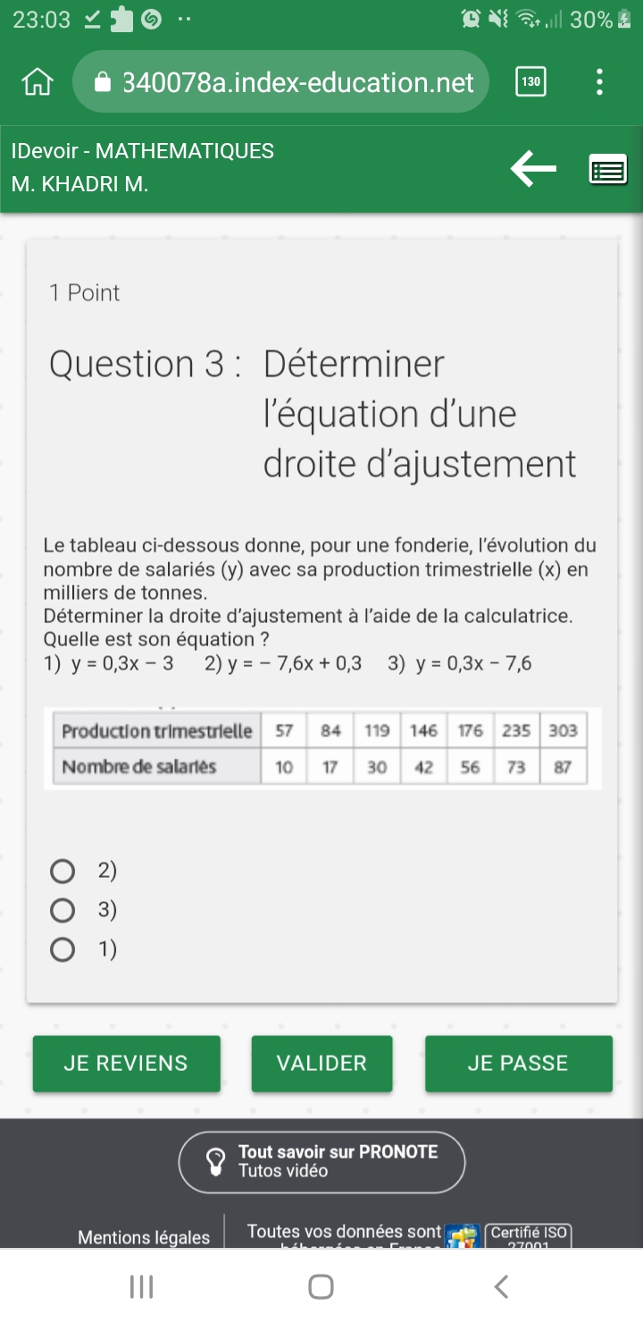 Le tableau ci-dessous donne, pour une fonderie, l’évolution du nombre de salariés (y) avec sa production trimestrielle (x) en milliers de tonnes.