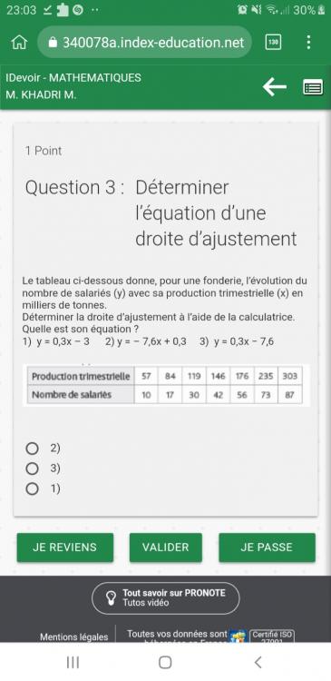 Déterminer la droite d’ajustement à l’aide de la calculatrice.