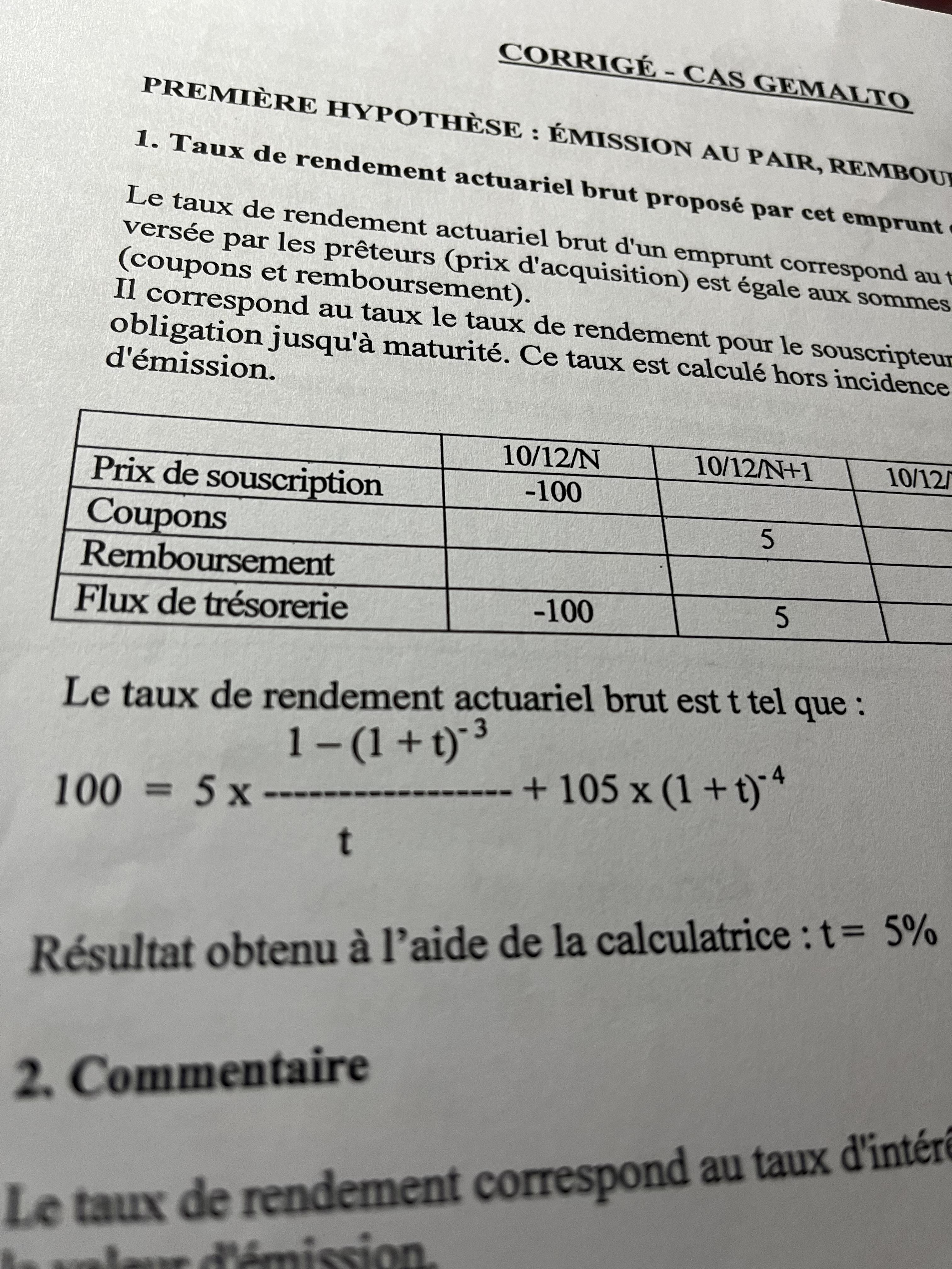 Le résultat obtenu doit être t=5%