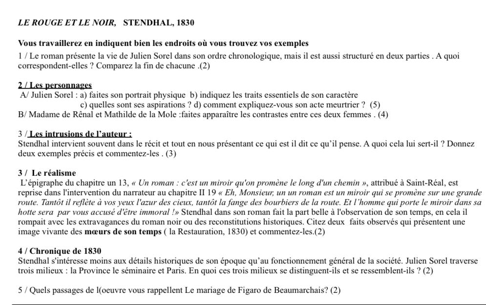 Bonsoir tout d’abord merci pour votre réponse. Mais j’aimerais si cela ne vous dérange pas vous solliciter pour la question n2 sur les distinctions entre Mathilde et mme de reinal j’ai axée mon développement sur l’idée de l’être et du paraître en utilisant leurs comportements après la mort de Julien et leurs manières de le « séduire » auriez vous d’autre remarques pertinentes à me conseiller ?