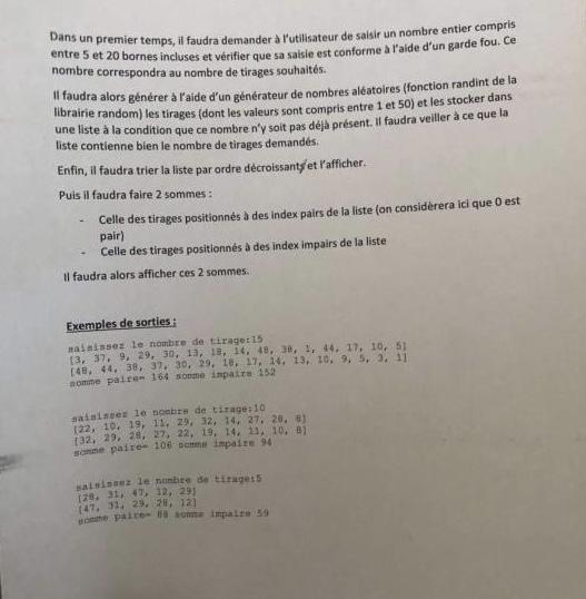 Le problème c’est pas que je veux pas c’est que j’arrive pas enfin la plupart du moins. Par exemple créer une liste de nombre aléatoire, la trier et l’afficher j’y arrive mais pour ce qui est du reste, j’ai beau réfléchir je sais pas comment faire