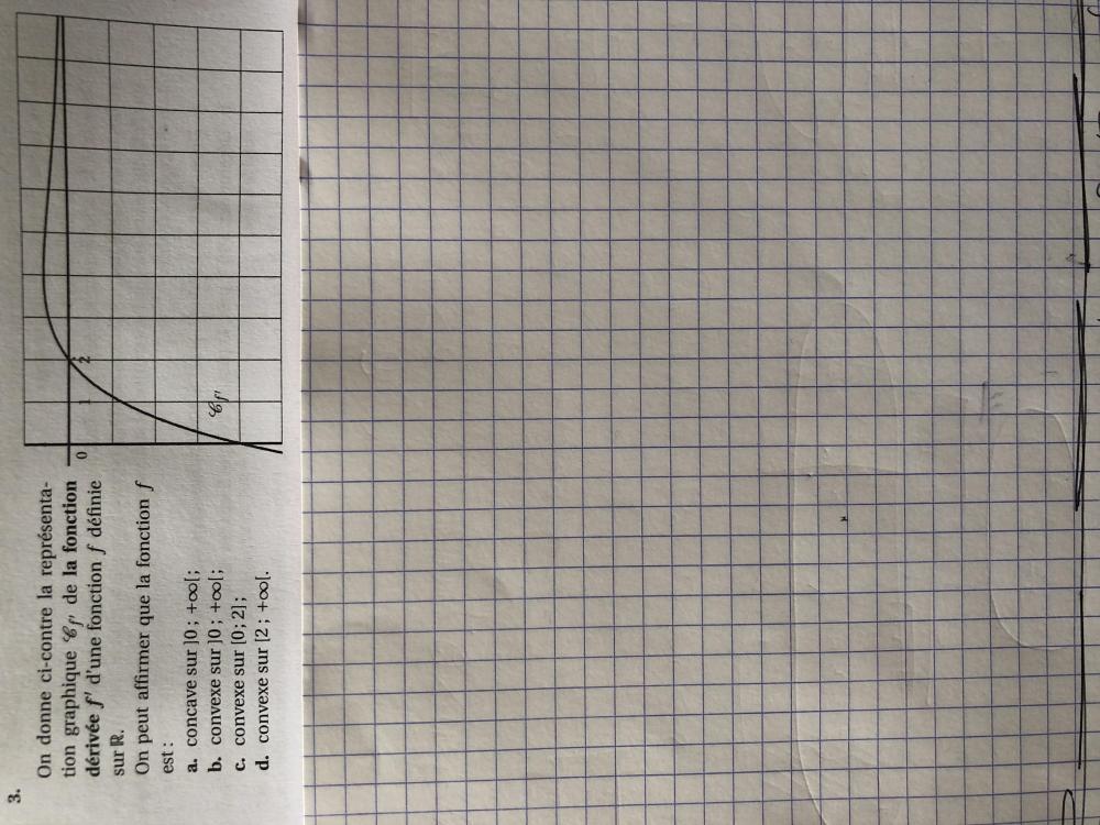 Bonjour tout le monde a J-2 avant le bac je me pose une question suite a un exercice. il et représenté sur un graphique, la fonction f’ et on nous demande quelle affirmation est vrai pour f. or sans la courbe de f mais avec sa dérivée je ne sais pas comment m’y prendre .. photo joint merci d’avance !