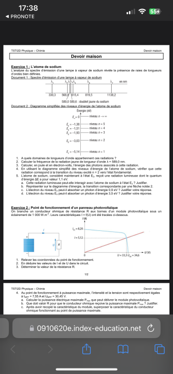 J'ai un devoirs maison , dont je ne comprends rien et honnêtement j'ai beau relire mon cours , cela ne change pas grand-chose voir même rien. C'est avec urgence et désespoir que je demande de l'aide à un âme charitable qui à une logique scientifique et un cerveau plus intelligent afin de m'aider à résoudre ce devoir maison. Celui-ci est sur 2 chapitres appelés " Energie transportée par la lumière ; Energie électrique en régime continu " Merci d'avance en espérant être victime d'un miracle.