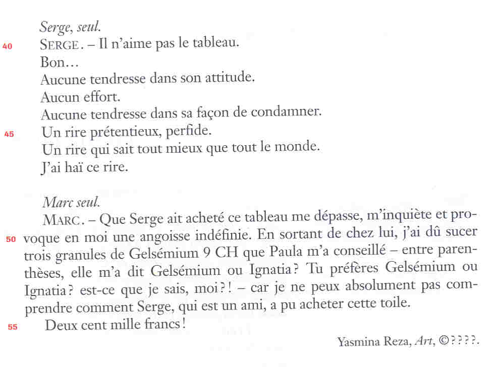 67rammstein67 Posté(e) le 24 avril 2005 Auteur Signaler Posté(e) le 24 avril 2005 Merci quand même. J'ai fini mon commentaire = 5 pages :P J'y ai passé du temps mais linspiration m'est venue d'un coup. Mon plan si il peut t'interesser : I - Une scène d'exposition a)Présentation des personnages b)Présentation de l'intrigue II-Une scène très originale a)Le silence est mis en scène b)Le dialogue coupé par les monologues (introspection) III-L'intérêt comique a)Le problème du tableau b)Le décalage entre les deux hommes @+