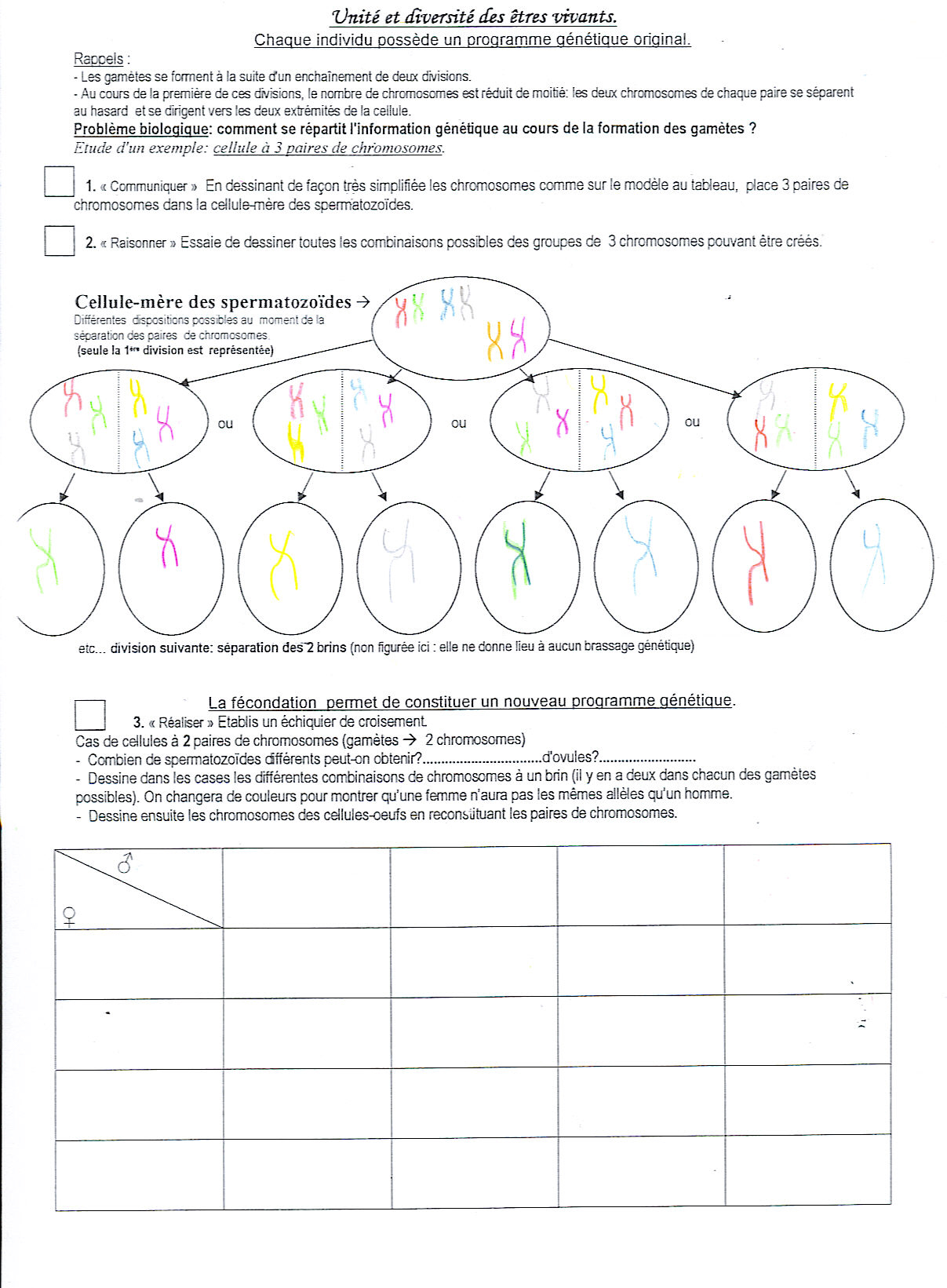 E-Bahut Matrix_ Posté(e) le 7 décembre 2005 E-Bahut Signaler Posté(e) le 7 décembre 2005 C'est bien beau de poster mais si je puis me permettre, un "petit" merci à michael et à experiment pour l'aide qu'ils t'ont donné ne va tuer personne. Ton 1) m'a l'air faux, revois comment se passe la méiose. ton 2) est un échequier de croissement, ça consiste à mettre dans les cases du haut les génotypes possibles pour l'homme et les 4 cases à droite ceux de la femme