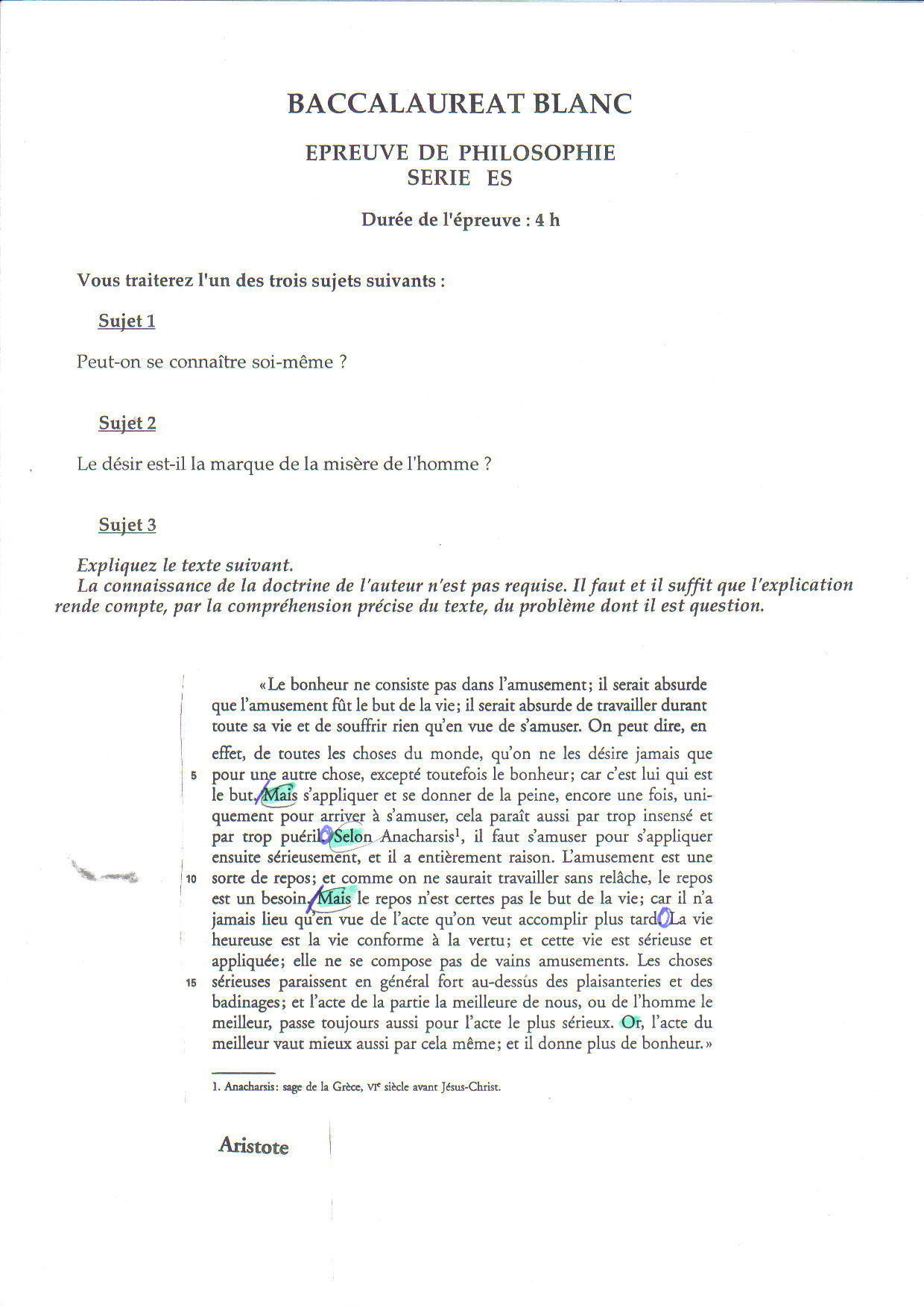 E-Bahut AngelineAmor Posté(e) le 25 avril 2006 E-Bahut Signaler Posté(e) le 25 avril 2006 Bonjour j'ai passer mon bac blanc philo a la rentrée derniere Ci joint le sujet et mon devoir corrigé Normalement en bas a telecharger je suis en serie Es ! Enfait je n'ai aps beaucoup réviser mes notions ni les theses de chaque auteur mais je connaisait quand meme ce qu'il se disai sur le désir et le besoin !! Alors dans mon commentaire de texte j'ai expliquer les phrases et inscrit quelque concept que je connaissai sur le besoin je n'ai aps baclé mon travail !! Mais comment est je fait pour avoir 6 je comprend pas la correction du prof et je n'etait pas là lors de la correction qui n'a interessai aucun de mes camarades malheureusement ! Une ami de classe qui elle connaissait son cour et qui a pri la meme chose et qui a utiliser tout les point de vu d'auteur de philosophe, a fait des comparaison a eu 5 ! Je croyai que ma sale note venait du fait que je ne m'etait pas reporté au cour mais non en fiat je ne comprend pas du tout !! J'accepte vraiment toute les critiques ! Merci d'avance