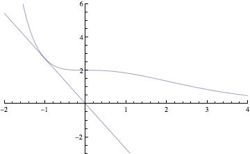 E-Bahut Barbidoux Posté(e) le 9 mars 2008 E-Bahut Signaler Posté(e) le 9 mars 2008 1----------------------------------- Le graphe Gamma (vert) est dérivé de celui de C (rouge) ..................................-1...............................1................. Gamma=G’......(-)........(0)..........(+)..............(0).....(-)........ C=G...........decrois.....Min........crois............Max.....decrois... 2------------ Coefficient directeur -1 ------------------------------------ Partie B 1------------------------ f0=(x^2+2*x)*exp(-x) f’0=(2*x+2)*exp(-x)-(x^2+2*x)*exp(-x)=-(x^2-2)*exp(-x) f0+f’0=(x^2+2*x)*exp(-x)-(x^2-2)*exp(-x)=2*(x+1)*exp(-x) 2------------------------ U=f-f0 solution de E’ : y’+y=0 ==> f’-f’0 +f-f0 =0 ==> f’-f=f’0+f0=2*(x+1)*exp(-x) ------------------------ f(x)=a*exp(-x) Lorsque f est solution de (E) alors f(x)=a*exp(-x)+(x^2+2*x)*exp(-x)=(x^2+2*x+a)*exp(-x) 3------------------------ f(x) passe par{1; 0}==> a=1 f(x)=(x^2+2*x+1)*exp(-x) 4------------------------- Le coefficient directeur de la droite tangente à h au point d’abscisse 0 vaut f’(0)=0 ==>f’(x)=(x^2+a-2)*exp(-x) ==> f’(0)=(a-2)=0 ==> a=2 ------------------------------------ Partie C 1------------------------ f(x)=(x^2+2*x+2)*exp(-x) f’(x)=-x^2*exp(-x) fonction décroissante monotone x-> - f(x)--> + x-> f(x) x^2/exp(x) -->0 2------------------------ Le coefficient directeur de la droite tangente à f(x) au point d’abscisse -1 vaut f’(-1) ==>f’(x)=exp(1) son équation est : y= f’(-1)*x-f(-1)-f’(-1)=-exp(1)*x 3------------------------ F(x)=(a*x^2+b*x+c)*exp(-x) F’(x)=(-a*x^2-b*x+2*a*x+b-c)*exp(-x)=(x^2+2*x+2)*exp(-x) ==> a=-1 ; 2*a-b=2 ==>b=-4 et c=6 F(x)=-(x^2+4*x+6)*exp(-x) ------------ on pose alpha=q A(q)=[F(x)] q0=6-(q^2+4*q+6)*exp(-q) A vérifier.............