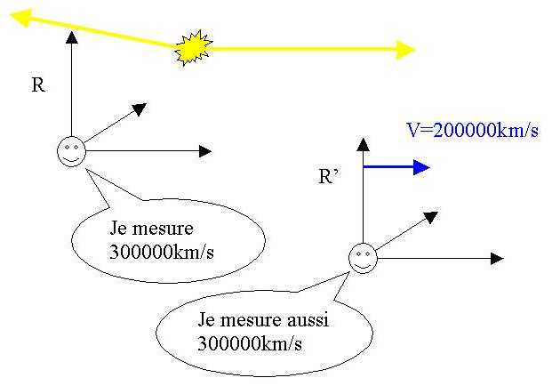 philippe Posté(e) le 2 novembre 2003 Signaler Posté(e) le 2 novembre 2003 salut! Il faut connaître un peu l'état de la physique avant Einstein. Petit à petit une refonte du système de pensée s'est opérée. Avant: Le temps et l'espace sont absolus. Les travaux (théoriques et expérimentaux) de Maxwell sur les ondes électromagnétiques au 19ème ont montré que les ondes EM avaient toutes la même vitesse dans le vide : c# 300 000km/s. La lumière. 2 théories s'affrontent : corpusculaire(Newton) et ondulatoire(Huygens). Il va s'avérer que, suivant le point d'étude, la lumière se comporte soit comme des corpuscules, soit comme une onde, soit comme les 2 à la fois. Les travaux de Maxwell conduisaient à dire que la vitesse de la lumière était isotrope et égale à c. Considérée comme une onde, il est , à l'époque, supposée que celle ci se propage dans un milieu : l'éther. (le vide aujourd'hui) Or l'expérience fondamentale de Michelson et Morley va ébranler ce résultat. En voici un de résultat (surprenant?): La vitesse de la lumière est une constante dans tous les ref galiléens ou d'inertie (ref. inertiel = ref en mouvement rectiligne uniforme par rapport à un autre). Quelques conséquences: la loi newtonienne de composition des vitesses est fausse le caractère absolu du temps et de l'espace est faux Autrement dit, le" bon sens" s'écroule: je suis dans un train roulant à 200km/h j'avance dans le sens de la marche à 10km/h il est alors clair que ma vitessse par rapport au sol est de 210km/h. eh bien non... Plus éloquent peu être: Un train roule à la vitesse de 200 000km/s un flash lumineux est émis dans le train (300000km/s) la lumière ne va pas à 500000km/s par rapport au sol dans le sens de la marche et 100000km/s dans l'autre sens mais encore à 300000km/s. Autrement dit on se retrouve devant un fait hallucinant (pour l'époque) : c+v=c!!! et c-v=c!!! L'expérience de Michelson et Morley va montrer que: la vitesse de la lumière est indépendante de la source et vaut toujours c=300000km/s peut importe le repère inertiel dans lequel vous êtes. C'est Einstein qui (après Lorentz et Poincaré) va éclaircir l'affaire. Il va démontrer qu'il y a de nouvelles transformations (plus compliquées que celles de Newton) qui permettent de calculer des coordonnées ou des vitesses d'un réf à un autre. Plus question d'additionner ou soustraire les vitesses par exemple; les transformation ne sont plus linéaires... Soit un événement E(x,y,z,t) mesuré dans un référentiel R. Cet événement sera repéré dans un référentiel R' en mouvement uniforme de vitesse v par rapport à R par E'(x',y',z',t'). (pour simplifier, les axes de R' et R sont parallèles et on considère que le mouvement se fait selon (Ox) et tel que (Ox) et (O'x') soient confondus à t=t'=0) Les formules de changement de coord (transformation de Lorentz), qui tiennent en compte de l'invariance de c, sont: x'=g(x-bct) y'=y z'=z t'=g(ct-bx)/c (beta) b=V/c (gamma) g=1/ (1-b²) Des conséquences: A la limite, quand v est petit devant c, on retrouve la transformation de Newton: x'=x-Vt y'=y z'=z t'=t Ouf! (1-V²/c²) impose V<c : c semble donc être une vitesse max pour les objets matériels. Dilatation du temps: t dépend du référentiel (pas d'absolu) et se dilate pour un obs en mvt. un observateur de R' ne mesure pas le même temps qu'un observateur de R: t'=g.t Contraction des longueurs : une barre fixe parallèle à (O'x') de longueur L0 dans R' aura pour longueur dans R: L=L0/g Dilatation des masses : un observateur de R' ne mesure pas la même masse qu'un observateur de R: m'=g.m Formules de composition des vitesses: R' est toujours en mvt rectiligne uniforme par rapport à R à la vitesse V. un mobile de vitesse v(vx,vy,vz) dans R aura pour vitesse dans R': v'(vx',vy',vz') avec vx'=(vx-V)/(1-Vvx/c²) vy'=vy/[g(1-Vvx/c²)] vz'=vz/[g(1-Vvx/c²)] ah c'est plus compliqué! je vais donc éviter de donner celles pour les accélérations!!!! qui, lorsque V<<c redonne celles de Newton: vx'=vx+V vy'=vy vz'=vz ouf encore! une autre csq: l'équivalence masse énergie l'énergie d'une particule au repos est donnée par la fameuse: E=m.c² Animée d'une vitesse V uniforme, l'énergie est: E=gmc² Démonstration: le vecteur p=gmv est le vecteur quantité de mvt (ou impulsion) (ce n'est pas p=mv comme ds le cas newtonien puisque celui ci ne se conserve pas dans une transfo de lorentz) on a p²=g²m²v² et puisque b=v/c p²=m²c²g²b² donc, en multipliant par c² et puisque g²(1-b²)=1 p²c²=g²m²c^4-m²c² soit g²m²c^4=m²c²+p²c² regardons ce qu'est g²m²c^4 ou plutôt sa racine carrée gmc² quand b est petit (cas non relativiste): un développement limité à l'ordre 1 donne: gmc²#mc²(1+b²/2)=mc²+1/2mv² on reconnait l'énergie cinétique Ec=1/2mv² on définit l'énergie totale relativiste par : E=gmc² lorsque v=0, E0=mc² (énergie de repos) l'énergie cinétique est l'énergie de mouvement moin l'énergie de repos: Ec=E-E0=(g-1)mc²=pc Tout ceci constitue ce que l'on appelle la relativité restreinte (RR). On aimerait étendre la théorie au cas de réf en mvt qcq : relativité générale (RG) De plus, la RR n'explique pas certains phénomènes comme la gravitation. Les formules montrent que c est la plus haute vitesse et que, si la lumière est composée de grains, ceux ci ont une masse nulle. Les rayons lumineux ne doivent donc pas subir l'influence de la gravitation or il est observé que les rayons lumineux sont courbés aux abords des masses... Relativité générale: Une réflexion approfondie d'Einstein sur la nature de l'espace et du temps va lui permettre d'aboutir sur la conception d'une théorie de la gravitation. Comment? En autre : l'égalité de la masse pesante et de la masse inerte va le mettre sur la voie. (masse pesante ou grave ou forte: c'est celle qui intervient dans le poids P=mG masse inerte: c'est celle qui intervient lorsqu'un corps prends de la vitesse e