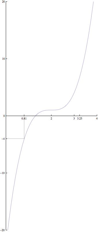 E-Bahut Barbidoux Posté(e) le 4 octobre 2009 E-Bahut Signaler Posté(e) le 4 octobre 2009 Au temps pour moi j’avis compris qu’il fallait trouver graphiquement P(-5) et non P(x)=-5 4-------------------------------- Voilà le graphe de la courbe représentative de P tracée dans l’intervalle [0, 4], mais il faut inverser la consigne c'est à dire prendre 1 cm = 4 unité en ordonnée et 1 cm= 1 unité en abscisse. 5-------------------------------- Lire graphiquement le ou les antécédents de -5 donne x=0,74. ce que l’on peut vérifier en calculant P(x)=3*(0,74-2)^3+1=-5,00 6-------------------------------- Lire graphiquement l’image de 3,25 donne 6,85 ce que l’on peut vérifer en calculant P(x)=3*(3,25-2)^3+1=6,86 7-------------------------------- Là c’est plus facile P(1)=3*(1-2)^3+1=-2 8-------------------------------- Lire graphiquement le ou les antécédents de -4 donne x=0,81. ce que l’on peut vérifier en calculant P(x)=3*(0,81-2)^3+1=-4,05