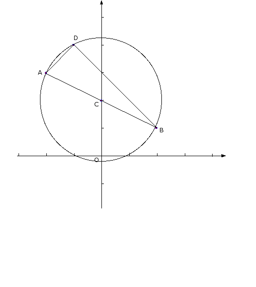 E-Bahut Barbidoux Posté(e) le 1 décembre 2009 E-Bahut Signaler Posté(e) le 1 décembre 2009 24-------------------------- Coordonnées du milieu de AB ==> {(2-2)/2; (3+1)/2} ce sont bien les coordonnées de C. Le centre du cercle circoncrit semble être le point C Démonstration AC{2; -1} ==> |AC|=√5 BC{-2; 1}} ==> |BC|= √5 DC{1; 2}==≥ |DC|=√5 Le centre du cercle circoncrit au triangle ADB est le point C. 25-------------------------- AK{-1; -4} ==>|AK|=√(1+16)=√17 BK{4; -1}==>|BK|=√17 |AK=|BK| ==> K appartient à la médiatrice de AB LA{4-1/2; 0} =LA{7/2; 0} ==>|LA|=√(49/4) LB{-3; -1-1/2}=LB{-3; -3/2}==> |LB|=√ (9+9/4)=√(45/4). |LA| |LB| ==> L n'appartient pas à la médiatrice de AB.