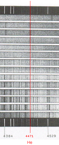 E-Bahut Barbidoux Posté(e) le 17 décembre 2009 E-Bahut Signaler Posté(e) le 17 décembre 2009 Une étoile est une boule de gaz très chauds siège de réactions nucléaires qui produisent de la lumière. Si la lumière du Soleil met minutes pour parvenir sur la terre elle met beaucoup plus de temps pour aller du centre du soleil à sa périphérie. Le coeur de l'astre est si dense que la lumière met environ 1 million d'années pour parvenir à la surface du Soleil appelée photosphère dont la température est d'environ 5 500°C . Le spectre de la lumière émise serait continu si le Soleil ne comportait pas d'atmosphère. En 1814, Joseph von Fraunhofer (1787-1826) a observé une multitude de raies noires, dans le spectre du Soleil du à l’absorption de la lumière par les éléments chimiques qui composent son atmosphère appelée chromosphère, et qui s'étend sur 2 000 km d'épaisseur environ autour du soleil. Cette atmosphère est constituée de gaz sous faible pression sa température peut atteindre 104 °C et les 20 000 raies répertoriées entre 300 et 700 nm, dans le spectre du soleil caractérisent la composition de son atmosphère. Couleur Longueur d'onde violet 380–450 nm G H bleu 450–490 nm FG vert 490–570 nm E F jaune 570–585 nm D E orange 585–620 nm C D rouge 620–780 nm A C ------------------------ les spectres du haut qui comprennent les raies de d l’hyrogène et de l’hélium sont ceux d’étoiles chaudes, ceux du bas d’étoiles froides ------------------------- 4384 A=438,4 nm -------------------------- ∆=4834-4250 =548 A=54,8 nm ==> échelle =548/44,5=12,315 A/mm -------------------------- Longueur d'onde de la raie de l'hydrogène comprise entre 4250 et 4834 ==> lambda=4250+∆*a/b=4250+54,8*28,9/44,5=4288 A=428,8 nm (les valeurs de a=44,5 mm et b=28,9 mm on étés mesurés sur la figure ci-dessous) --------------------------- Raie de l’hélium Non, elle peut être absente du spectre du du fait d’une absorption de lumière par de l’hélium contenu dans le soleil lui même A vérifier.........