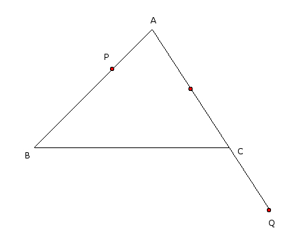 Rictis Posté(e) le 2 février 2010 Auteur Signaler Posté(e) le 2 février 2010 EXERCICE 3 1. ABC est untriangle. On concidére les points P et Q définis par - P est le point du segment [AB] tel que BP =2/3 BA - Q est le symétriquepar rapport à C du milieu de [AC] a) Faire une figure Je n'arrive pas a faire celui - ci ^^ Sinon merci pour la figure de l'exercice 2