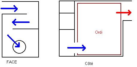 Biquet Posté(e) le 1 décembre 2003 Signaler Posté(e) le 1 décembre 2003 BJR Je viens de retrouver dans mes papiers un croquis que j'avais fait pendant que j'élaborais mon boîtier actuel, un moment j'ai pensé aussi fabriquer un "surboitier" ou caisson. Ce système est plus simple que le précédant (relativement) je savais bien que j'avais pensé à ce sur boîtier et cela m'étonner que ce soit si compliquer. Il était composé (voir figure) d'une planche en MDF de 16 mm, sur laquelle était disposé à chaque extrémités un tasseau en sapin de 45 x 45 mm. Ce tasseau été conçu pour bloquer la partie supérieures recouvrant le PC, constituée de 4 cotés et un dessus en MDF de 16 mm. Sauf à l'avant une porte en 19 mm. Le tout à l'intérieur "gédicoustiquer". Il y avait deux pot d'échappement, un à l'avant un à l'arrière sous forme d'une sorte de conduite réalisé avec des tasseaux en sapin de 45 x 45 mm et d'une planche de MDF (encore lui !) disposé par-dessus avec du gedicoustique. La grande flèche représentait le parcours de l'air de l'avant droit en haut à l'arrière droit en bas, avec des trous carré de 80 x 80 mm à l'avant en bas et en haut à l'arrière. J'avais imaginé que le surboitier pouvait serrer légèrement les tôles du boîtier (élasticité relative du gédi) c'est la même méthode que j'ai employé dans le boîtier actuel pour isoler les deux niveaux du point de vue de l'écoulement de l'air. Les câbles passer par le coté arrière gauche au travers d'un joint souple (pour les fenêtres), le même est employé pour la porte, c'est ce que j'ai disposer sur la partie mobile du boitier actuel. Je ne jamais fabriquer ce "surboitier" car je voulais me débarrasser complètement du boîtier d'origine. Cela fonctionne t-il comme mon boîtier actuel ? Mystère ! Les cotes sont celles de mon boîtier de l'époque + une vingtaine de centimètre en longueur, place des trous d'alimentation en air et d'échappement, et des câbles. a+