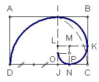 anne66 Posté(e) le 7 mars 2010 Signaler Posté(e) le 7 mars 2010 bonjour j'ai cet exercice a faire ca fait plusieurs jours que je suis dessus mais je n'y comprends rien 1) quelle doit etre la longueur d'un rectangle ABCD de largeur AD = 6cm pour qu'il soit un rectangle d'or ? donner la valeur exacte puis verifier qu'une valeur approchée a 10 pres centimetres est 9,71 cm 2) dessiner ce rectangle ABCD puis a l'intérieur les carrés AIJD IBKL KCNM JNOP dans chaque carré tracer le quart de cercle de centre J de rayon JD ; le quart de cercle de centre L de rayon LI; le quart de cercle de centre M de rayon MK; le quart de cercle de centre O de rayon ON le résultat de la construction est une spirale appelée spirale d'or 3) prouver que la longueur de cette spirale est 3racine carree5 pi cm si quelqu'un pouvait m'aider je ne comprends pas merci