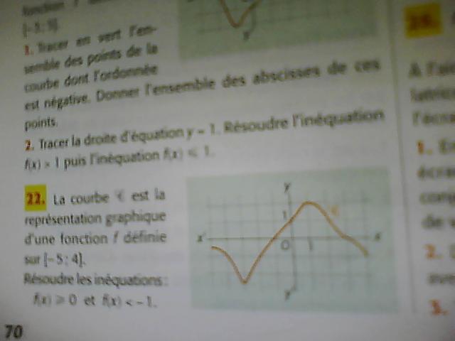 senna94 Posté(e) le 20 avril 2010 Auteur Signaler Posté(e) le 20 avril 2010 bon voila mon exo 22 ( dsl je n'ai pas de scanner juste une webcame ) un peu flou vraiment dsl ma fonction est defini sur [-5;4] je doit trouvé la solu de f(x)0 est ce que la solu est [-5;-1] u [3;4] ???
