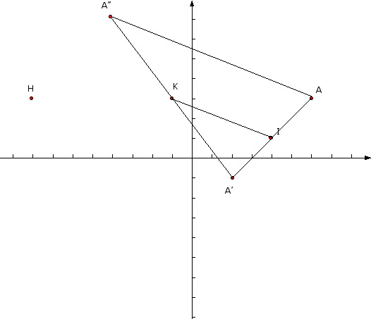 crevettenaw Posté(e) le 16 mai 2010 Signaler Posté(e) le 16 mai 2010 Dans un repère , on donne les points : I(4;1) , K(-1;3) A(6;3) et H(-8;3) 1) A' EST LE POINT TEL QUE vecteur AA' = 2AI , et A" est l'image de A' par la symetrie de centre K . Calculer les coordonnées de A' puis celle de A" . placer les points A' et A" . Que représente le point I pour le segment [ AA'] 2) Calculer les coordonnées des vecteurs IK et AA" ( ps ya des fleches sur les vecteurs ) 3) Que peut - on dire de ces vecteurs ? Que peut - on en deduire pour les droites (IK) et (AA")? 4) Démontrer que les droites (A A') et (A"H) sont parallèles . Conclure sur la nature du quadrilatère A" AA ' H . Les points A , K et H sont - ils alignés ? MERCI DE M'AIDER SVP AVANT DEMAIN ET AVANT 21HOO MERCI D'AVANCE