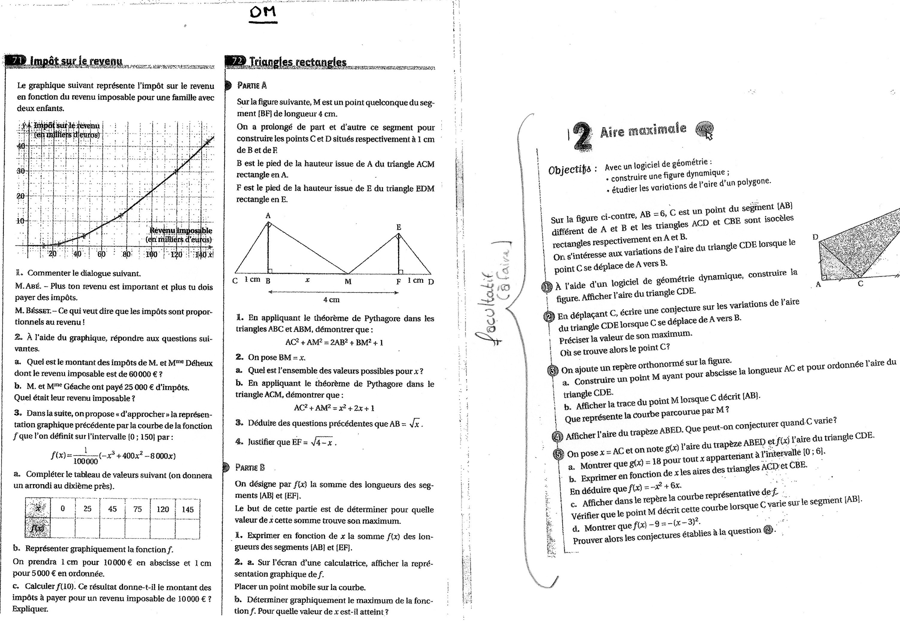 E-Bahut Boltzmann_Solver Posté(e) le 3 novembre 2010 E-Bahut Signaler Posté(e) le 3 novembre 2010 Okey ça oui 2) M est un point quelconque du segment [bF] de longueur 4 cm donc l'ensemble des valeurs possibles pour x est [0;4]