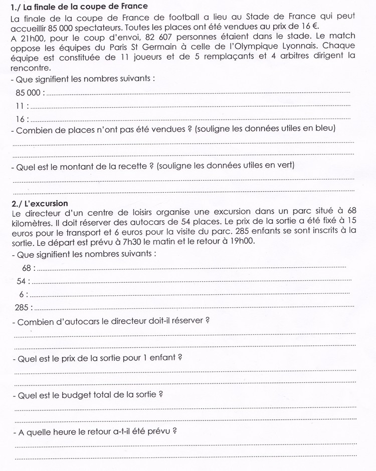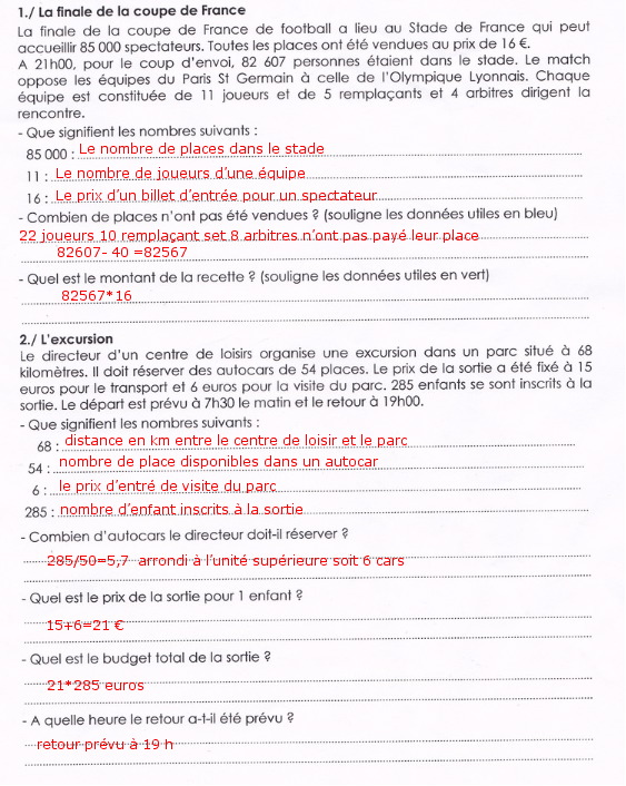 christophe1 Posté(e) le 19 novembre 2010 Signaler Posté(e) le 19 novembre 2010 Bonsoir à tous, J'ai un petit problème pouvez vous m'aider : les nombres suivants : 85 000 :spectateurs 11 :joueurs 16 :€ 2/ signifient les nombres suivants : 68 :km 54 :places 6 :euros 285 :enfants