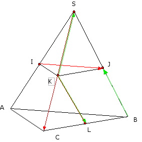 E-Bahut Barbidoux Posté(e) le 27 novembre 2010 E-Bahut Signaler Posté(e) le 27 novembre 2010 Exercice 1 Le tétraèdre SABC est tel que les faces SAB et ABC sont des triangles isocèles de base [AB] 1. Montrer que [sC] est inclus dans le plan médiateur de [AB] ----------------------- Le plan médiateur du côté AB passe par le milieu H de AB et est perpendiculaire à AB et toute droite de ce plan est donc perpendiculaire à AB. SAB est isocèle en S donc SH la hauteur de ce triangle est aussi médiatrice de AB et S appartient au plan médiateur de AB ABC est isocèle en C donc CH la hauteur de ce triangle est aussi médiatrice de AB et C appartient au plan médiateur de AB ----------------------- 2. Que peut-on en déduire pour les arêtes [AB] et [sC] ----------------------- AC appartient au plan médiateur de AB donc perpendiculaire à AB ----------------------- Exercice 2 Soit vecteur U = vecteur AB - vecteur CB + vecteur 2CA Montrer que les vecteurs U et AC sont colinéaires ----------------------- U=AB-CB+2*CA =AB+BC+2*CA=AC+2*CA=CA=-AC et U et AC sont colinéaires ----------------------- Exercice 3) Soit un tétraèdre SABC. On désigne par I, J , K et L les milieux respectifs des arêtes [sA] , [sB] , [sC] et [bC] 1. Les vecteurs IJ , KL et SC sont-ils coplanaires ? 2. Même question pour les vecteurs BJ , KL et KS ----------------------- Les points J, K C appartiennent au plan SCB, le Point I n'appartient pas à ce plan donc les vecteurs s IJ , KL et SC ne sont pas coplanaires Les points J, K L et S appartiennent au plan SCB, donc les vecteurs BJ , KL et KS formés à partir de ces points son coplanaires -----------------------