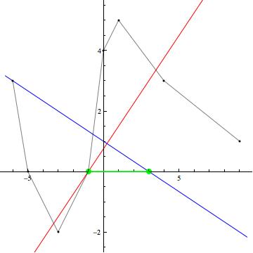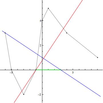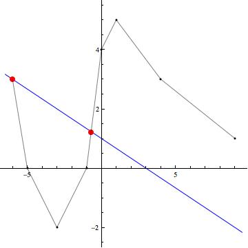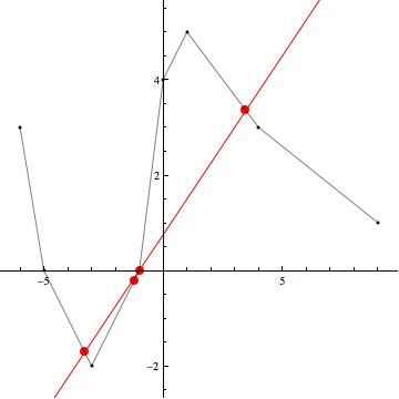 marine.r Posté(e) le 8 janvier 2011 Auteur Signaler Posté(e) le 8 janvier 2011 Rien à changer pour les figures, mais pour le texte, après relecture ce matin, c'est quand même mieux comme cela.... 1------------------ Si l'on reporte dans un repère orthonormé les bipoints correspondant aux renseignements donnés sur le graphe de f(x) (tableau de variation, valeurs particulières de f(x)) on obtient le graphe de points suivant Un des graphes le plus simple possible de de f(x) consite à joindre ces points de manière linéaire. Les valeurs extrémales atteintes par f(x) sur son intervalle d'étude étant comprises entre -2 et 5 on peut dire que sur son intervalle d'étude -2 f(x) 5 2a-------------------- Les solutions de f(x) =g(x) sont les abscisse des points d'intersection des graphes de f(x) et g(x). Il existe 4 points d'intersection entre f(x) et g(x) un seul de ces point est une solution exacte (x3=-1)de f(x)=g(x) puisque c'est un point commun connu des graphes des deux fonctions. Les abscisse des trois autres points d'intersection ne peuvent être que des solutions approchées et l'on aurra -5 /uploads/emoticons/default_inferieur.gif">/uploads/emoticons/default_inferieur.gif">/uploads/emoticons/default_inferieur.gif">/uploads/emoticons/default_inferieur.gif">/uploads/emoticons/default_inferieur.gif">http://www.e-bahut.com/uploads/emoticons/default_inferieur.gif' alt='<='> x1 -2 , -2 x2 -1 , x3=-1 solution exacte et enfin 1 x4 4 2b------------------ De la même maière le graphe de h(x) coupe celui de g(x) en deux points. L'abscisse du premier est solution exacte (x1=-6) de f(x)=h(x) puisque c'est un point commun connu des graphes des deux fonctions, le second est tel que -1 x2 w 0 2b------------------- valeurs de x pour lesquelles f(x) et g(x) sont simultanément >=0 valeurs de x pour lesquelles f(x) et g(x) sont simultanément > 0 Pour qu'un produit de facteurs soi nul il faut et il suffit qu'un des facteurs le soit donc f(x)*g(x) = 0 pour x= -1 et x=3
