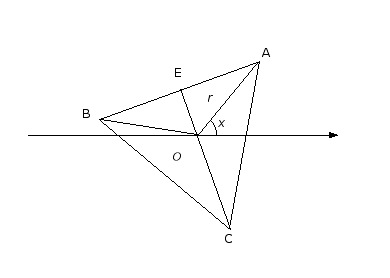 E-Bahut Barbidoux Posté(e) le 29 janvier 2011 E-Bahut Signaler Posté(e) le 29 janvier 2011 (O ; i ; j) est un repère orthonormal A est le point de coordonées polaires (r;x) avec 0<x<TT/2 dans le repere polaire (O ; i)ABC est un triangle équilatéral de centre O tel que (AB;AC)=TT/3 1a)Exprimer le coté du triangle ABC en foncion de R. Le centre d'un triangle équilatéral est son centre de gravité situé aau 2/3 des médianes en partnat du sommet. Les médianes d'un triangle équilatéral sont aussi les hauteurs h qui valent h=a*√3/2 où a est la côté du triangle équilatéral. Il s'en suit que OA=r=(2/3)*h=(2/3)*a√3/2=a√3/3 ==> a=r*√3 b)donner la mesure des angles (OA;OB) et (OA;OC) (OA;OB)=2*Pi/3 et (OA;OC) =-2*Pi/3 En deduire les mesures de (i;OB) et de (i;OC) (i;OB)=x+2*Pi/3 et de (i;OC)=x-2*Pi/3 C) En déduire des coordonées polaires de B et C dans le repère (O;I) B(r, x+2*Pi/3) sont les coordonées polaires de B et C(r,x-2*Pi/3) sont les coordonées polaires de C dans le repère (O;I) d) Déterminer les coordonées cartesiennes de A,B,C. A{r*cos(x),r*sin(x)} sont les coordonées cartesiennes de A, B{r*cos(x+2*Pi/3),r*sin(x+2*Pi/3)} sont les coordonées cartesiennes de B, C{r*cos(x-2*Pi/3),r*sin(x-2*Pi/3)} sont les coordonées cartesiennes de C, 2- E est milieu du côté [AB]. a) Exprimer OE puis OC en fonction de OA et OB. OE=OB+BE =OA+AE ==> 2*OE=OB+BE +OA+AE=OB+OA b) Demontrer que OA+OB+OC=0. 2*OE+OC=0 ==> OB+OA+OC=0 c) En deduire que: cos(x)+cos(x+2TT/3)+cos(x-2TT/3)=0 sin(x)+sin(x+2TT/3)+sin(x-2TT/3)=0 De la relation OB+OA+OC=0 on déduit : r*cos(x)+r*cos(x+2*Pi/3)+r*cos(x-2*Pi/3)=0 ==> cos(x)+cos(x+2*Pi/3)+cos(x-2*Pi/3)=0 r*sin(x)+r*sin(x+2*Pi/3)+ r*sin(x-2*Pi/3)=0 ==> sin(x)+sin(x+2*Pi/3)+sin(x-2*Pi/3)=0