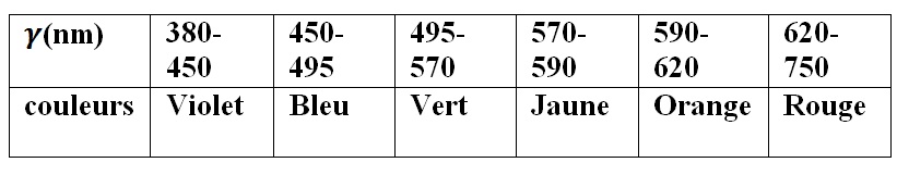 Su Princess Posté(e) le 31 janvier 2011 Signaler Posté(e) le 31 janvier 2011 Bonjour J'ai fait un exercice en physique et je ne sais pas si le résultat à mes deux calculs sont corrects. Pourriez vous regarder s'il vous plait, et me dire si j'ai bon ou faux ? Voici l'énoncé: Données: Célérité de la lumière dans le vide : c = 3,00 ×10^8m.s^-1; constante de Planck : h = 6,62×10^-34 J.s. L'énergie E des photons associés à une onde électromagnétique peut se déterminer à l'aide de la relation : E= hv= h (c/Y) 1) Les ondes lumineuses visibles par notre oeil ne représentent qu'une petite partie du vaste domaine des ondes électromagnétiques. Donner, sous forme d'encadrement, les limites chiffrées en nanomètres des longueurs d'onde du domaine visible. Préciser les couleurs aux limites. 2) Situer les domaines d'ondes suivants : rayons U.V ; rayons I.R ; rayons Y ; ondes radio ; rayons X sur l'axe du schéma ci-dessous que l'on recopiera. On précise que l'échelle des longueurs d'onde n'est pas respectée. ( voir l'image jointe). 3) Une onde ultraviolette a une longueur d'onde Y dans le vide égale à 310 nm. a - Calculer sa fréquence v . b - Cette onde transporte de l'énergie sous forme de photons. Exprimer et calculer, en joules (J), l'énergie E transportée par un photon de cette onde. Citer une propriété ou un effet des rayons U.V sur le corps humain. Voici mon travail: 1) voir mon tableau joint 2 ) voir schéma joint (image) 3) a- v= 6.62 * 10 ^-34 ( 3*10 ^8 / 310* 10 ^-9 ) = 6.4 * 10^-19 J b- E= 6.62 * 10^-34 * 6.4 * 10^-19 = 4.23 * 10^-52 ( 3 * 10^8 / 310 *10^-19 ) = 4 * 10^-27 J . Mon travail est bien? ( j'ai du mal avec les calculs à faire) Merci d'avance.