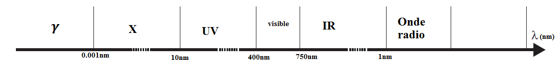 mehdi62 Posté(e) le 31 janvier 2011 Signaler Posté(e) le 31 janvier 2011 Bonjour, Elles ne sont pas citées dans l'énoncé mais normalement il y a les micro ondes entre les infrarouges et les ondes radios. Les infrarouges sont situées entre 750 nm et 1mm Les micro ondes de 1mm à 30 cm Et les ondes radio + de 30 cm 3) a) La formule de la fréquence est: ν = c /λ avec c: célérité de la lumière dans le vide et λ: longueur d'onde ν= 3.108 / 310.10-9 ν= 9,97.1014 Hz b) E = h ν E = 6,62.10-34 * 9,97.1014 E = 6,6.10-19 J Les rayons ultraviolet A causent un vieillissement prématuré de la peau. Les rayons ultraviolet B sont cancérigène à forte exposition (mélanome), provoquent également des brûlures, coups de soleil. Les rayons ultraviolet C sont très nocifs mais sont totalement arrêtés par la couche d'ozone. Les rayons UV A et UV B font bronzer.