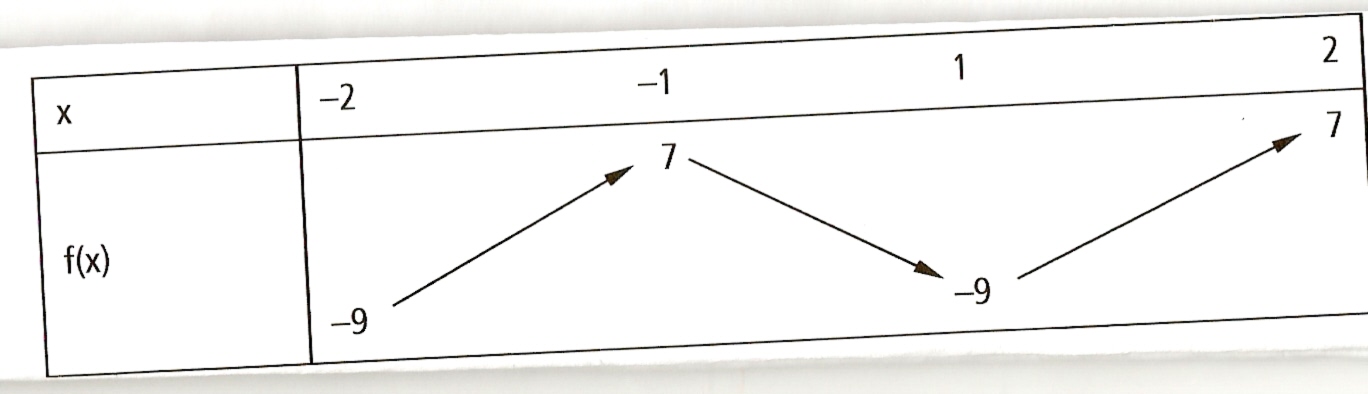 jerem=besoins d'aide Posté(e) le 19 mars 2011 Signaler Posté(e) le 19 mars 2011 exercice 1= On donne le tableau de variation d'une fonction f, construite à partir de fonctions de référence, définie sur [-2;2]. (voir tableau de variation en pièce jointe) 1. Justifier que l'équation f (x) = 0 admet trois solutions x1, x2,x3, dans l'intervalle [-2;2] 2. la fonction f est en fait définie sur [ -2;2] par : f(x) = 4 x3 -12x -1. on suppose que x1< x2<x3. A l'aide de votre calculatrice , donner une valeur approchée de x1,x2,x3 à 10 -3 près. 3. Donner dans un tableur le signe de f(x) suivant les valeurs de x , puis dans un autre tableau le signe de f '(x) suivant les valeurs de x.