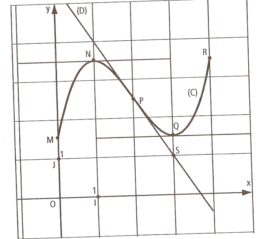 jerem=besoins d'aide Posté(e) le 21 mars 2011 Signaler Posté(e) le 21 mars 2011 Exercice 3 : f est la fonction définie sur [ 0;4] dont la représentation graphique © est donnée ci-dessus. (voir le tableau de la représentation graphique en pièce jointe) les points M(0; 3/2) , N(1;7/2) , P(2;5/2), Q(3; 3/2), R(4; 7/2) appartiennent à ©. la courbe © admet en chacun des points N et Q une tangente parallèle à l'axe des abscisses. la droite ( D) est la tangente à la courbe © au point P ; elle passe par le point S de coordonnées (3;1). 1.a. Lire f'(1), f'(2) et f'(3). b. Déterminer une équation de la droite (D). 2.a. Déterminer à l'aide du graphique le nombre de solutions de l'équation f(x) = 3 sur l'intervalle [0;4]. b.Reproduire la figure ci-dessus et tracer la droite d'équation y = x/2 + 3/ 2 puis, à l'aide du graphique ,résoudre l'inéquation f(x) < x/2+3/2. Exercice 4 : On considère les fonctions f et g définies sur ] 0; + x[ par f(x) = 1/ x et g(x) = -1/2 x2 Démontrer que, en leur point d'abscisse 1, les tangentes respectives à Cf et Cg sont parallèles.