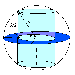 anais33 Posté(e) le 15 décembre 2003 Signaler Posté(e) le 15 décembre 2003 bonjour!! je suis tjrs avec mon exercice dt l'énoncé est: Déterminer parmi les cylindres de révolution inscrits dans une sphère de rayon R donné (cad dont les 2 contours de bases appartiennent à la sphère) celui dont le volume est maximal et préciser son rayon r et sa hauteur h. J'ai un peu avancé mais ensuite je suis bloquée!!! Voici ce que j'ai fait: Soit R le rayon de la sphère ,r le rayon du cylindre et h la hauteur. D'après pythagore on a: R^2=(h^2)/4 + r^2 Sachant que le volume d'un cylindre est V=pi * r^2 *h on remplace dc on a: V=pi * h * (R^2-(h^2)/4).Et c'est à partir d'ici que je suis bloquée...... Voila!!jespère que qq va pouvoir m'aider un petit peu!!! @ bientot ci joint un dessin..