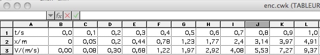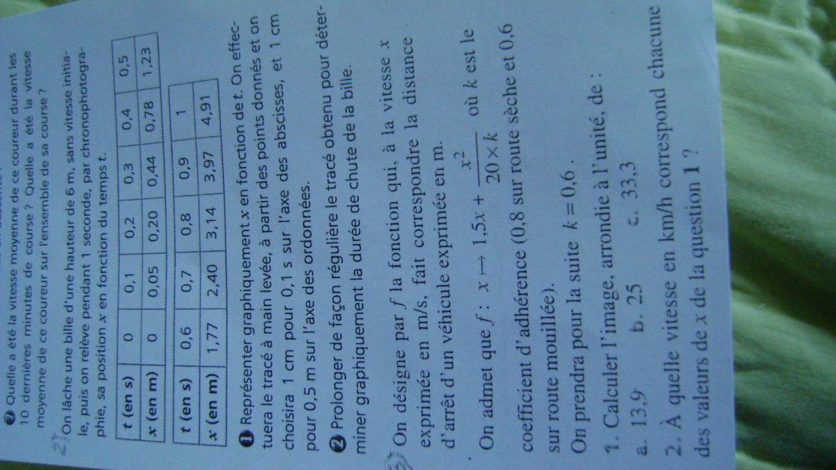 E-Bahut Barbidoux Posté(e) le 22 septembre 2011 E-Bahut Signaler Posté(e) le 22 septembre 2011 Durée de la chute de la bille 1,11 sec f(13,9)=35,95=36 m/s f(25)=89,58=90 m/s f(33,3)=142,36=143 m/s