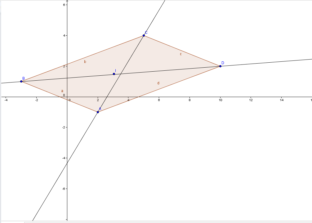 E-Bahut Boltzmann_Solver Posté(e) le 30 octobre 2011 E-Bahut Signaler Posté(e) le 30 octobre 2011 Je t'ai déjà dit quoi faire. Fais le dessin avec : * A (2;-1) , B(-3;1) , C(5;4) * A (2;2) , B(-4;-19) , C(1;-1.5) Et les calculs pour les points I(xi,yi) et D(xd,yd) pour aussi les placer. Ainsi, que peux tu dire des quadrilatères ABCD ? Courage