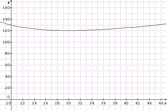 E-Bahut Papy BERNIE Posté(e) le 28 décembre 2011 E-Bahut Signaler Posté(e) le 28 décembre 2011 3) d) et e) Tu dois avoir un graph comme celui que je t'envoie qui montre que la longueur minimale de clôture est de 120 m ( alors le pré est carré avec x=y=30) et la longueur maximale de clôture est 130 m et dans ce cas une dimension mesure 20 m et l'autre 45 m. Bonnes fêtes de fin d'année à toi aussi et aussi bonne fin de vacances.