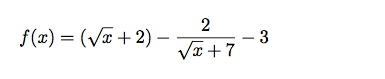 E-Bahut Barbidoux Posté(e) le 2 janvier 2012 E-Bahut Signaler Posté(e) le 2 janvier 2012 Étudier les limites de ces fonctions: a)f(x)=(√x+2)-2/(√x+7)-3 en 2 A l'appui de ce que dit Zorba, voilà (exprimé sur deux lignes) l'expression de f(x) écrite ci-dessus : est-ce bien l'expression dont on l'on te demande de calculer la limite en 2 ???