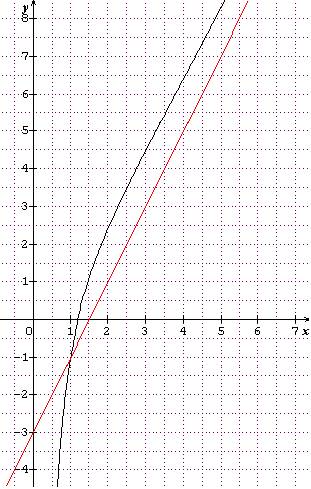 E-Bahut Papy BERNIE Posté(e) le 21 janvier 2012 E-Bahut Signaler Posté(e) le 21 janvier 2012 2) a) le cours dit que : En +infini , la fct puissance de x l'emporte sur la fonction Ln. Donc : lim ln(x)/x=0 x--->+inf Ici , le "x" au déno est à la puissance 1 , mais la règle s'applique quand même. lim 2x=+inf x-->+inf Par somme : lim f(x)=+infini x-->+inf b) lim f(x)-(2x-3)=lim 4*(ln(x)/x) x-->+inf On a vu que : lim ln(x)/x=0 x--->+inf Donc : lim f(x)-(2x-3)=0 x-->+inf Ce qui prouve que la droite y=2x-3 est asymptote oblique à Cf en +infini. c) Il nous faut étudier le signe de : lim f(x)-(2x+3) donc le signe de : 4*(ln(x)/x) donc le signe de ln(x)/x Sur ]0;+inf[ , le déno "x" est tjrs positif donc : ln(x)/x est du signe de ln(x). Or : Sur ]0;1[ , on sait que ln(x) < 0 et sur ]1;+inf[ , ln (x) > 0. Donc : Sur ]0;1[ , f(x)-(2x-3) < 0 donc f(x) < 2x-3 donc Cf est au-dessous de D. et sur ]1;+inf[ , f(x)-(2x-3) > 0 donc f(x) > 2x-3 donc Cf est au-dessus de D.