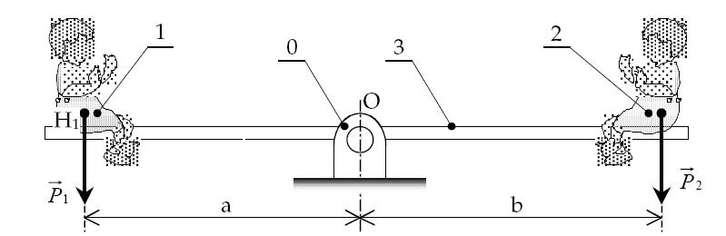 j-l Posté(e) le 19 février 2012 Signaler Posté(e) le 19 février 2012 Balançoire Une balançoire 3 est articulée en O (liaison pivot) sur un socle fixe 0. P1 et P2 représentent les poids respectifs des deux enfants 1 et 2, appliqués respectivement en H1 et H2. On souhaite calculer les moments par rapport au point O de P1 et de P2 pour, ensuite, les comparer. a=200cm et b==1800mm, P1=288N et P2=32daN 1)Calculez les moments par rapport au point O de ces deux forces à l'aide du produit vectoriel. 2)Calculez les moments par rapport au point O de ces deux forces à l'aide de la méthode du "bras de levier". 3)Quelle est la méthode de calcul que vous préconisez? Justifiez votre réponse. 4Comparez ces deux moments et concluez. <--Voilà un schéma pour représenter la situation Merci